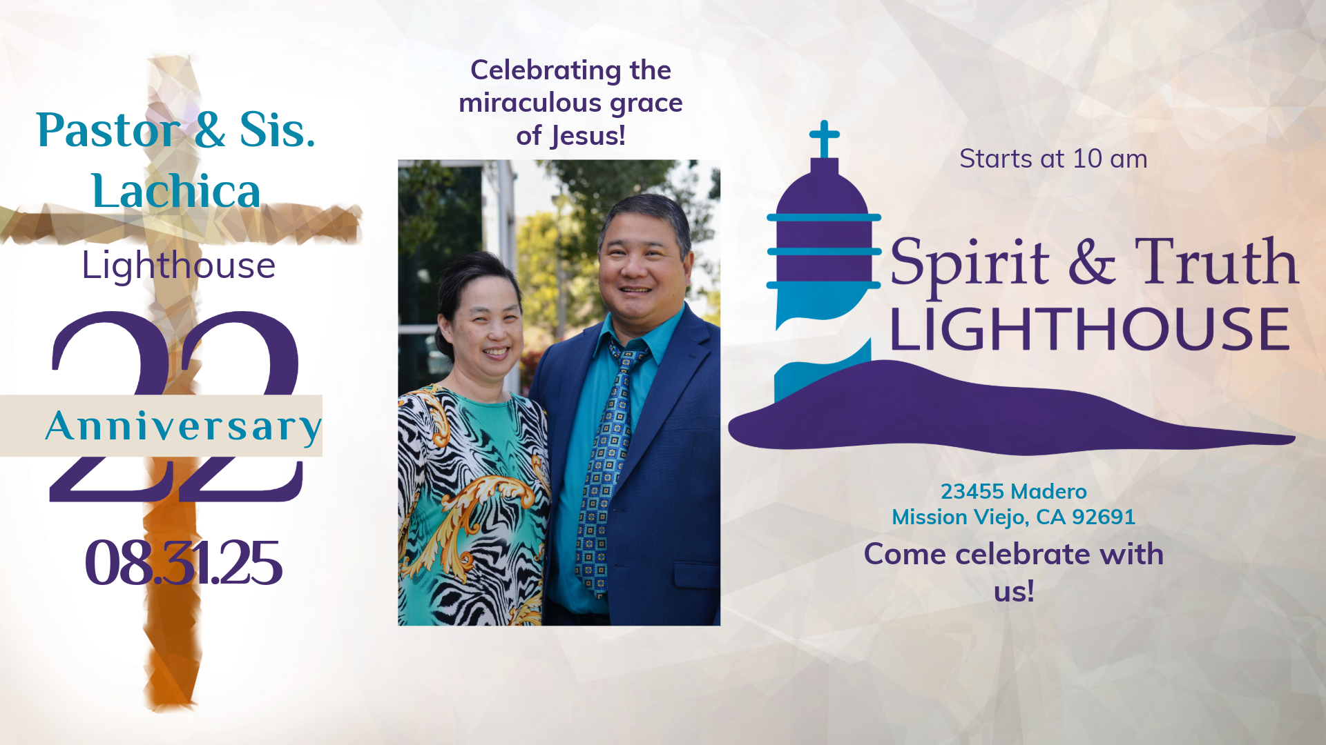 Spirit & Truth Lighthouse 23455 Madero, Suite C, Mission Viejo, CA, United StatesJoin us in celebrating God's miraculous grace all these years!