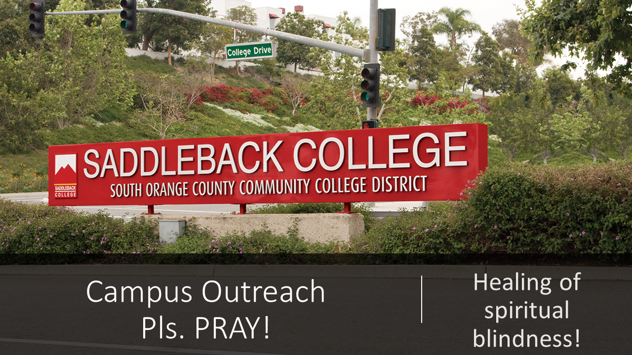 Saddleback College 28000 Marguerite Pkwy, Mission Viejo, CA, United StatesJoin us for a college Campus outreach at Saddleback College every Tuesday!